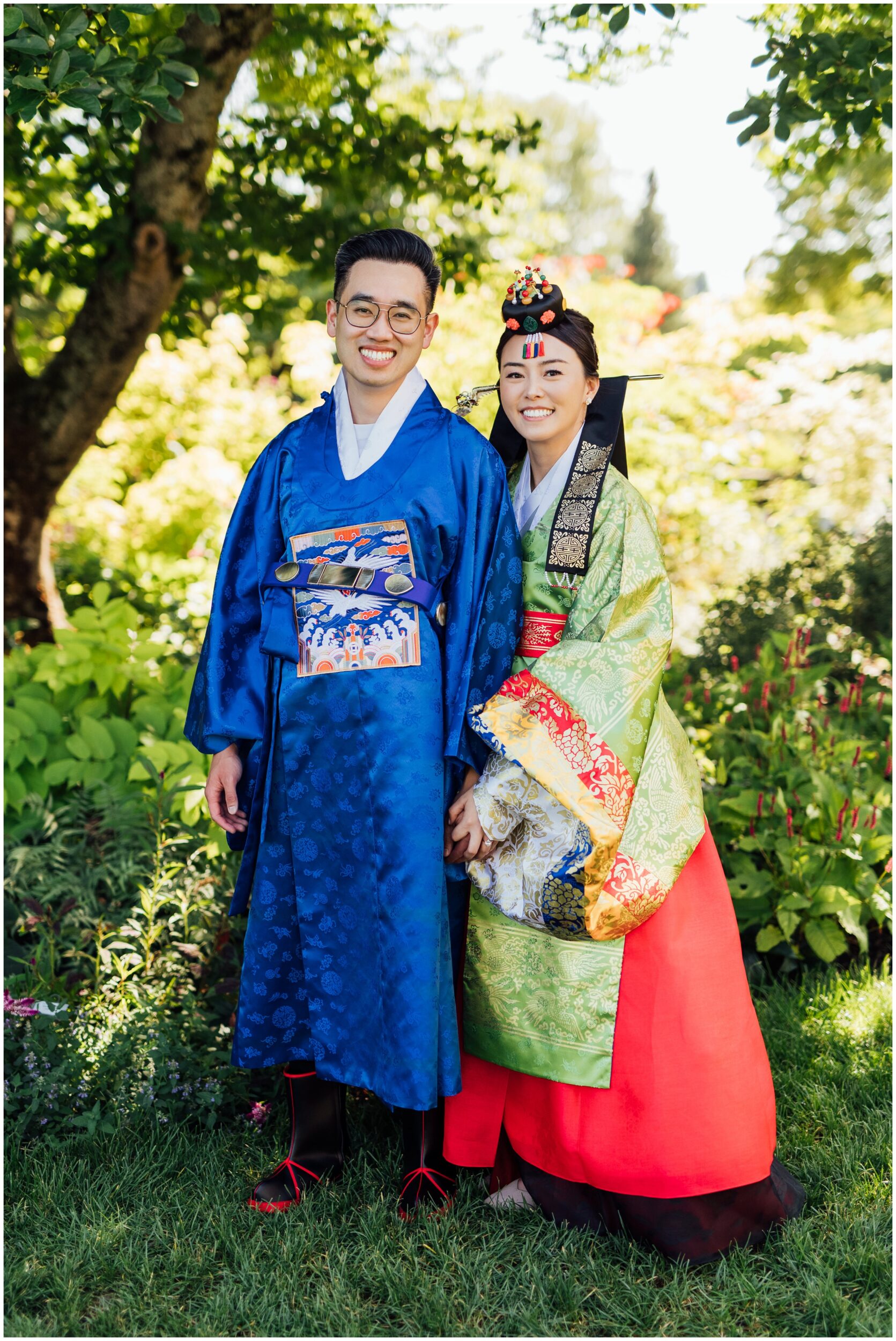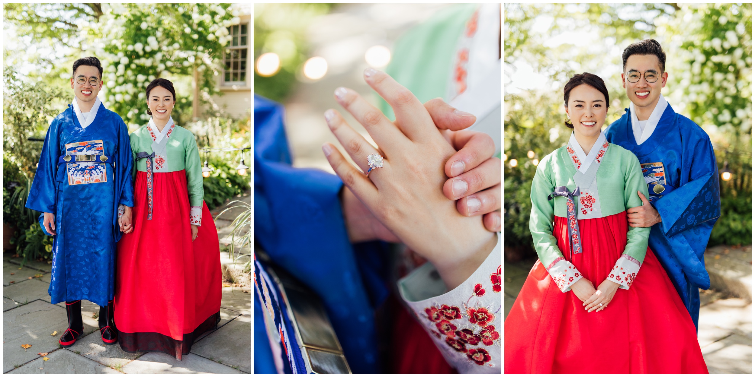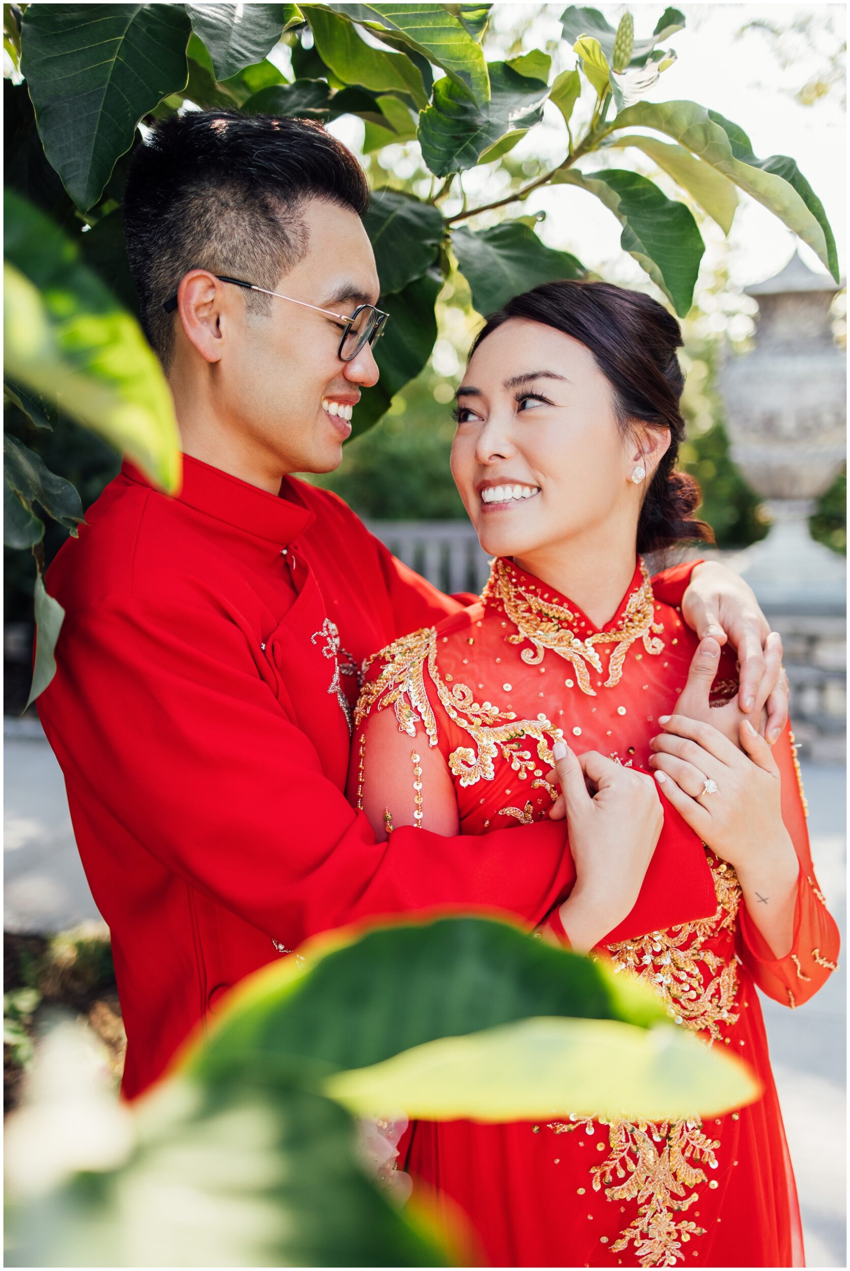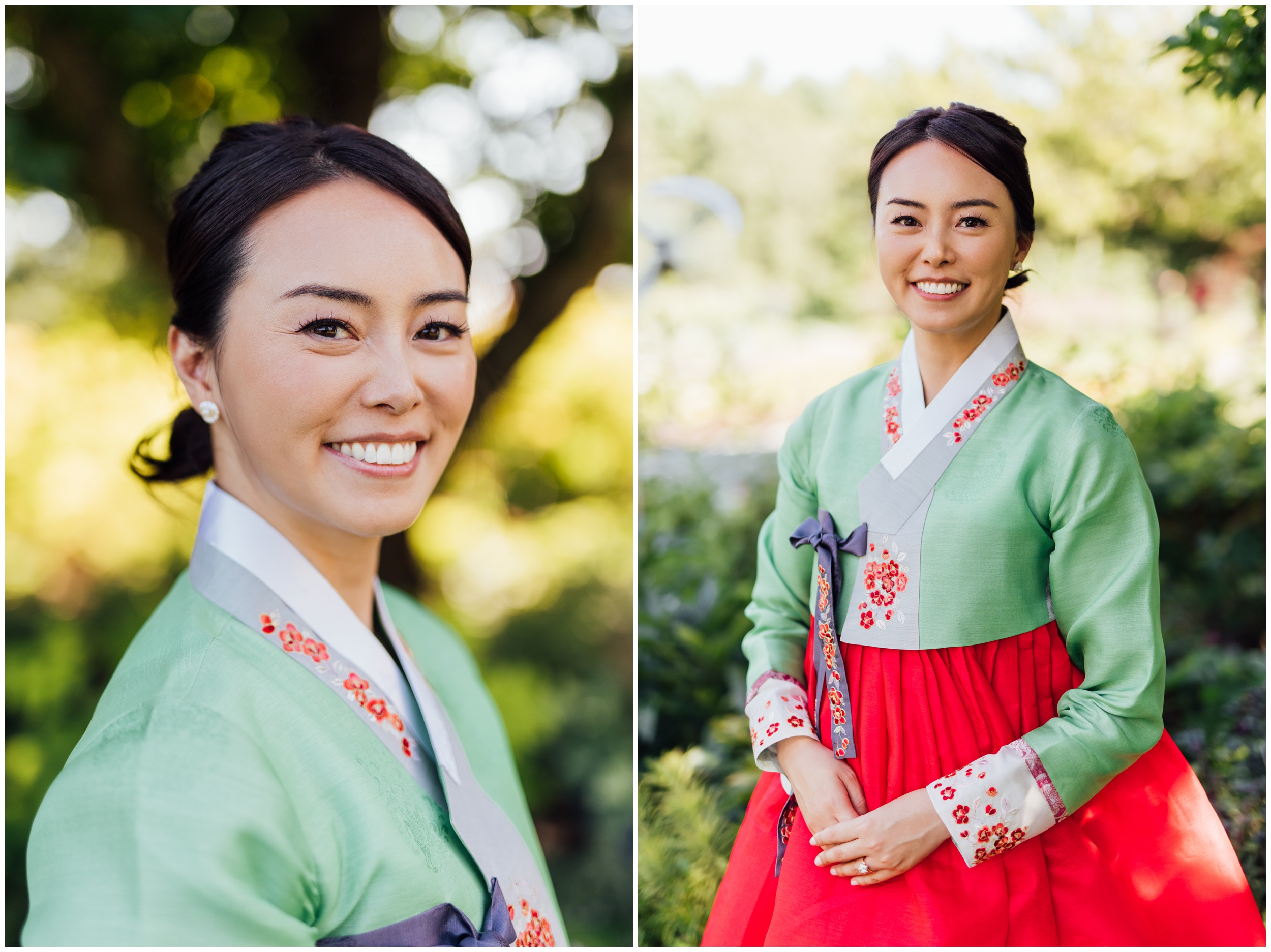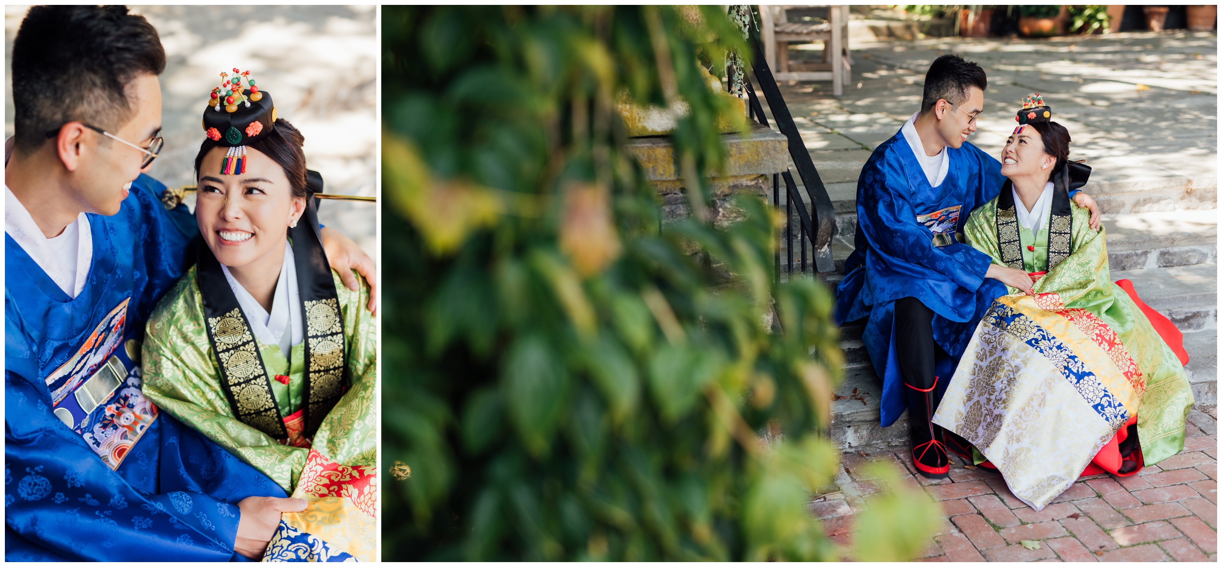 One of the most special elements of this session was Sophia and Hoang’s choice to wear traditional Korean and Vietnamese attire. Incorporating these cultural garments brought such depth and significance to their engagement photos, turning the session into a true celebration of family, history, and identity. Seeing them walk through the gardens in their traditional outfits felt powerful and personal, and it added a beautiful layer of storytelling to every image.