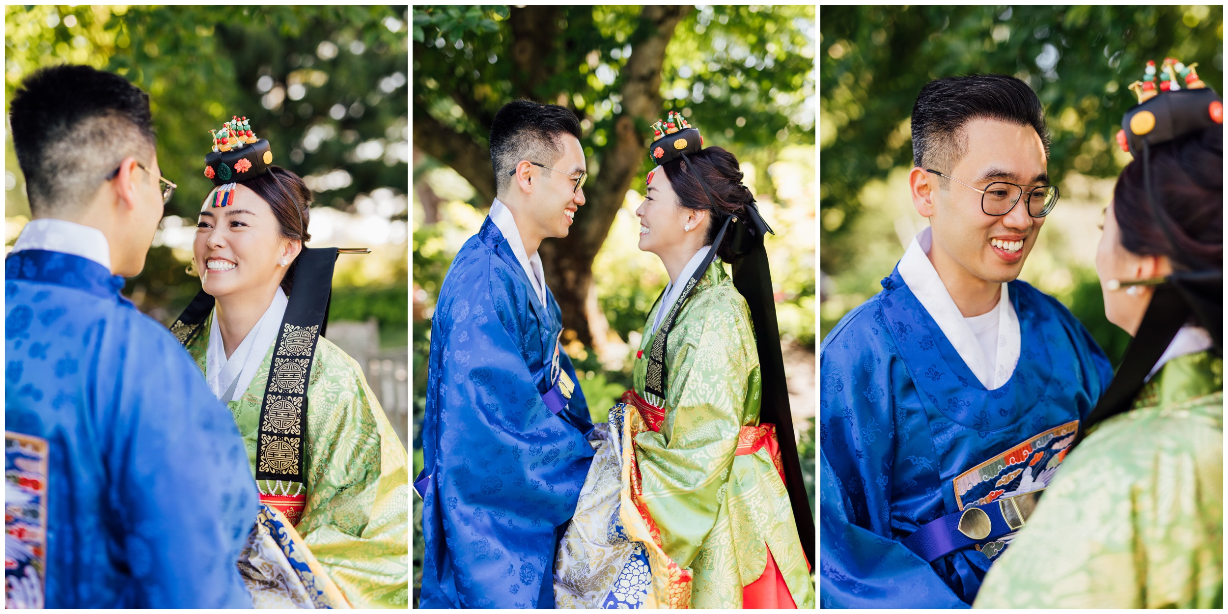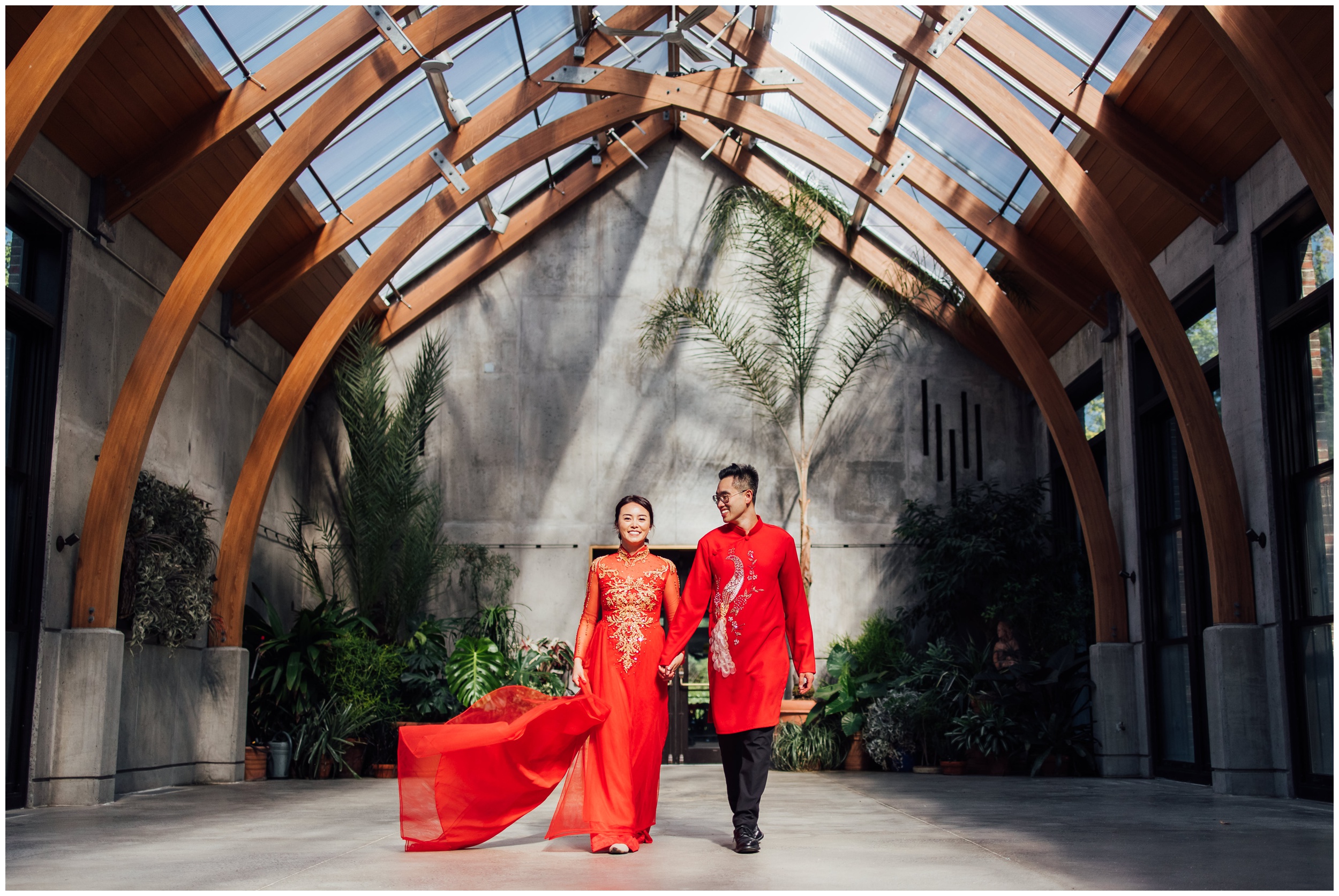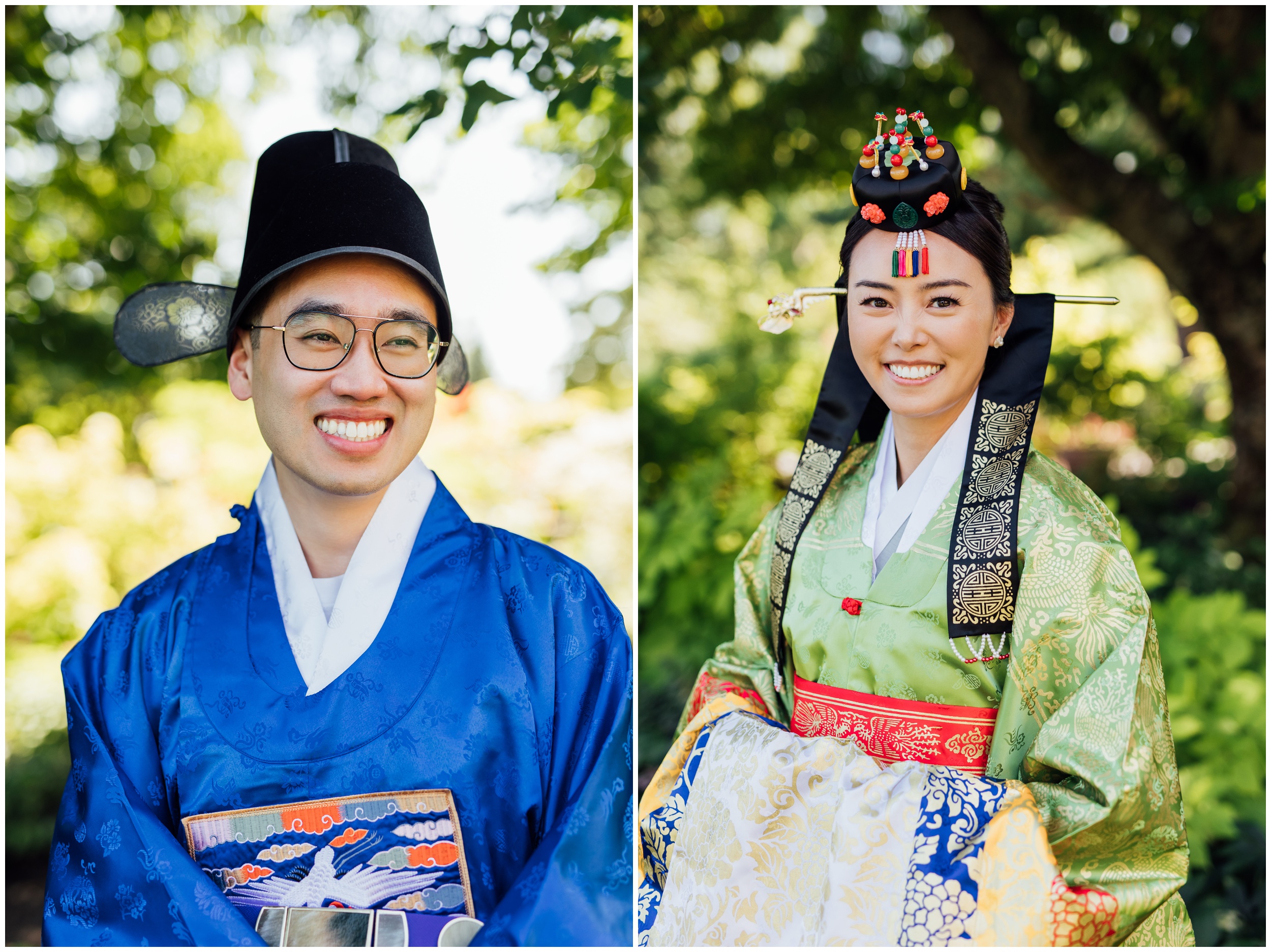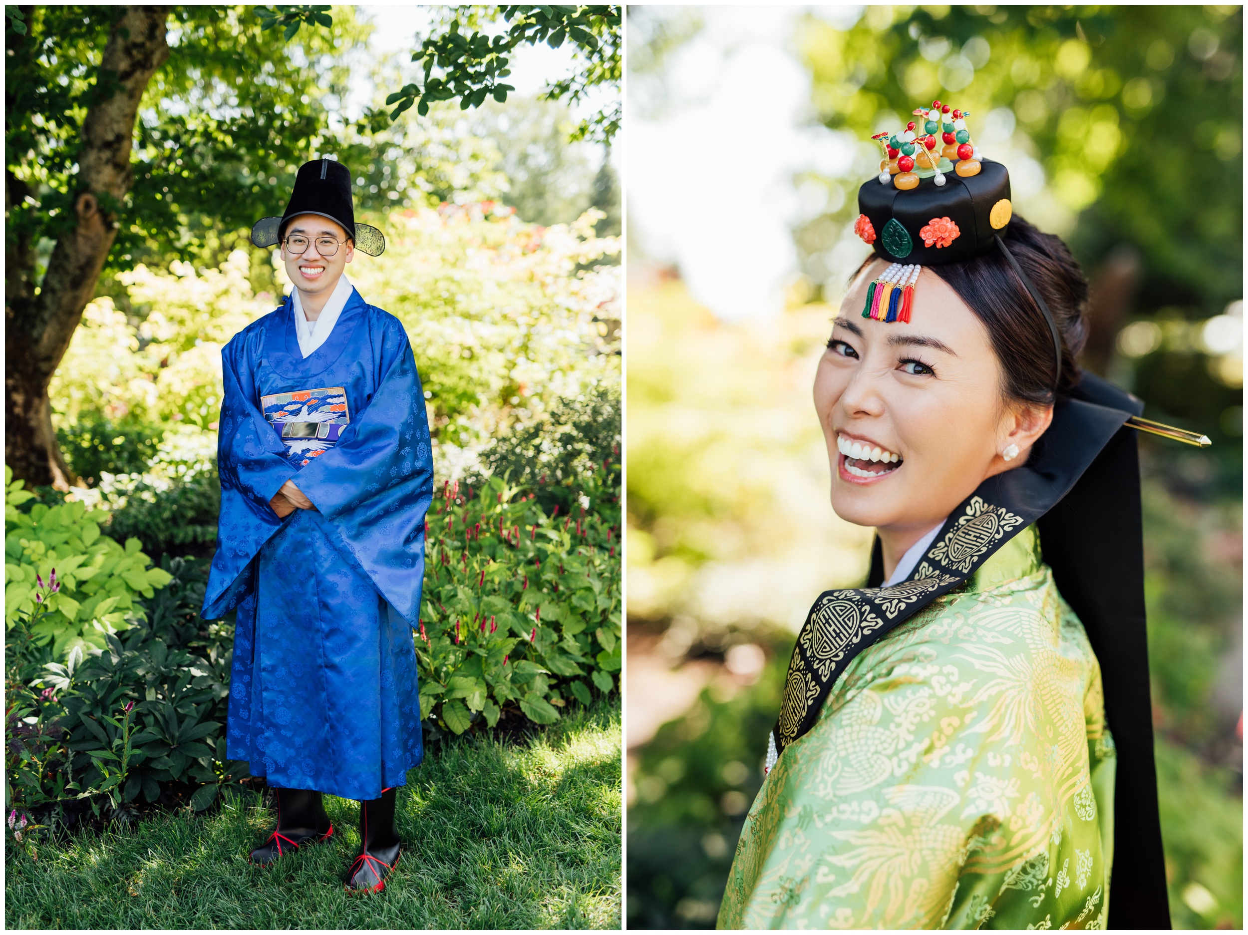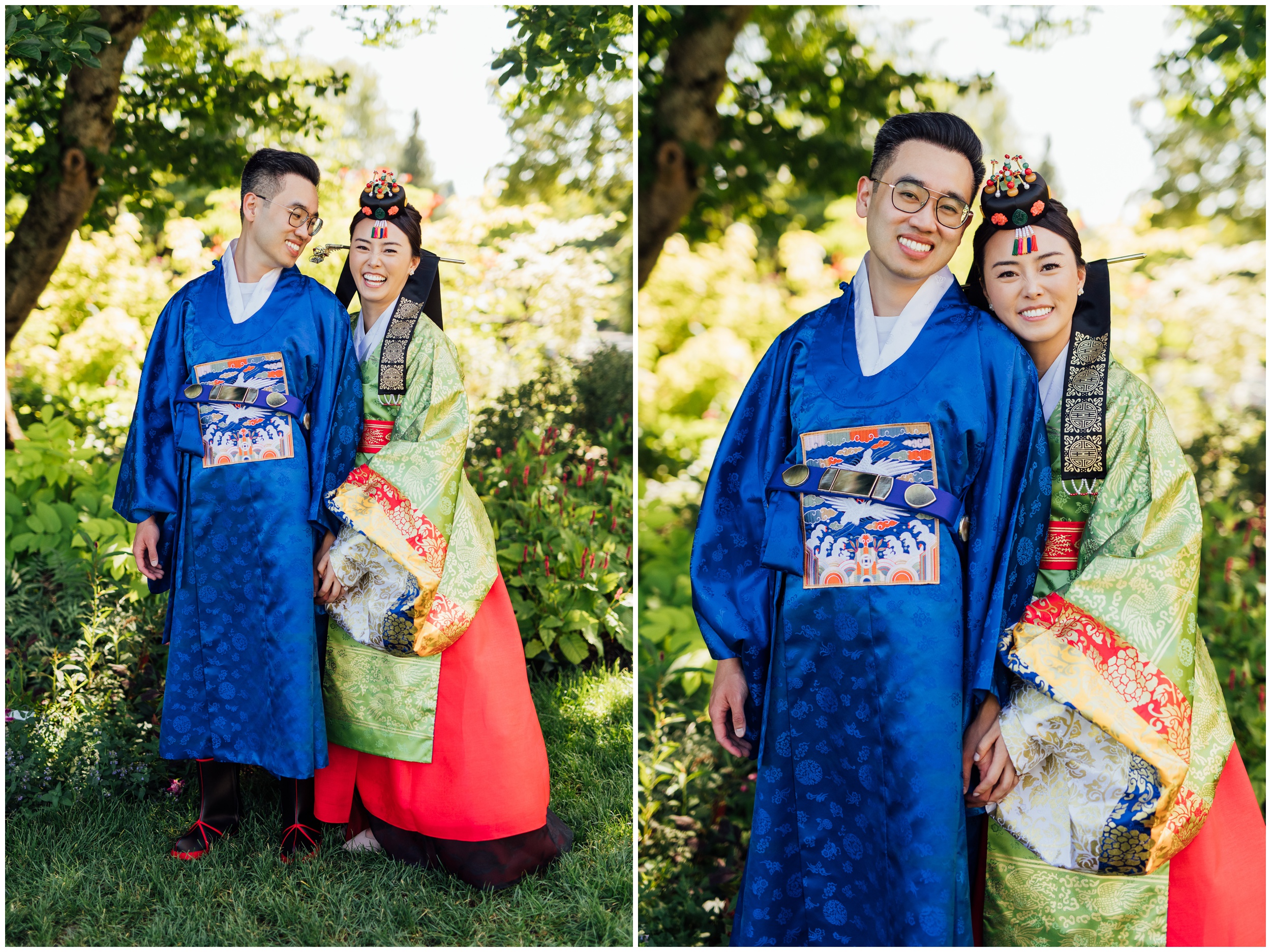 One of the most special elements of this session was Sophia and Hoang’s choice to wear traditional Korean and Vietnamese attire. Incorporating these cultural garments brought such depth and significance to their engagement photos, turning the session into a true celebration of family, history, and identity. Seeing them walk through the gardens in their traditional outfits felt powerful and personal, and it added a beautiful layer of storytelling to every image.