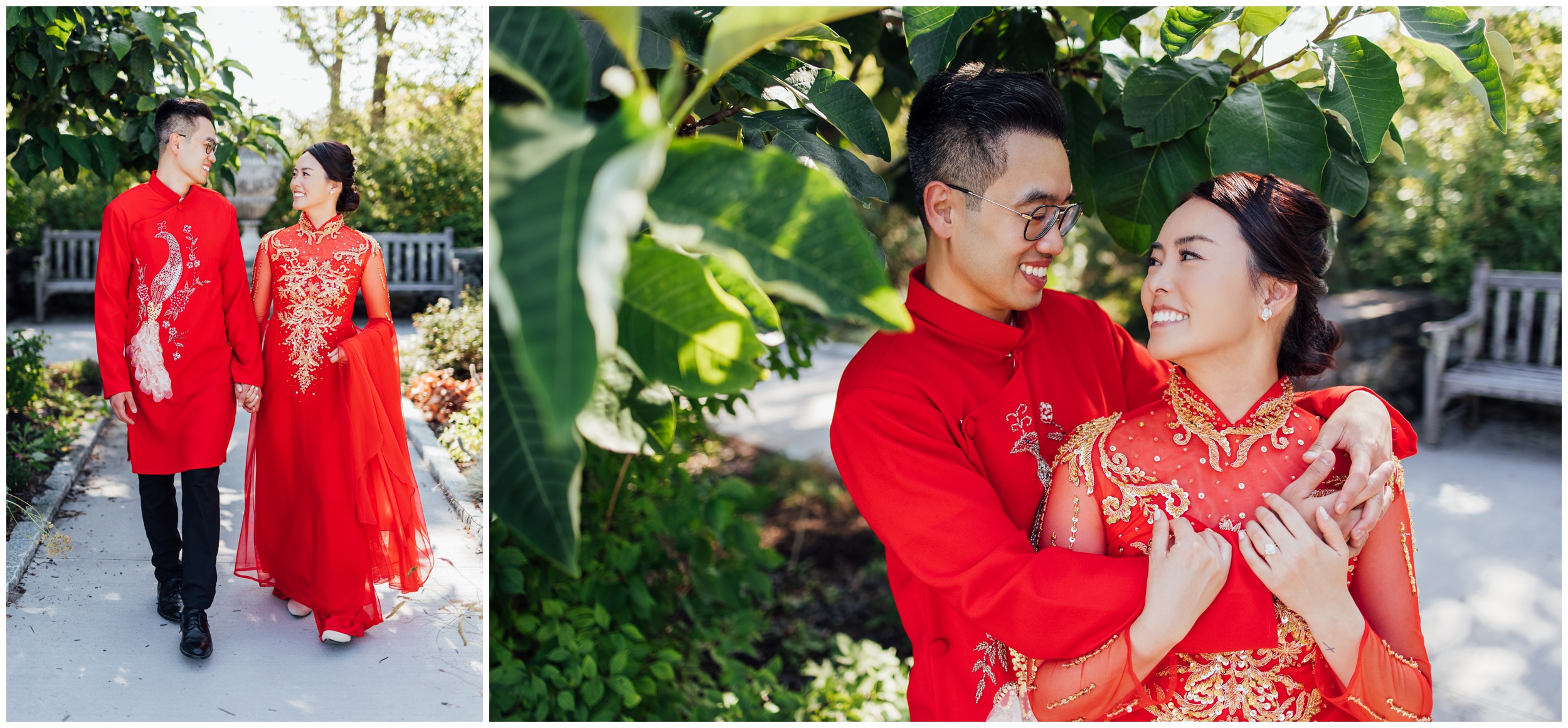 Sophia and Hoang’s engagement session at New England Botanic Garden at Tower Hill in Boylston, Massachusetts was equal parts meaningful, joyful, and incredibly fun to photograph. From the moment we started, it was clear how intentional they were about honoring their story, not just their love for each other, but also the heritages that shaped who they are today.