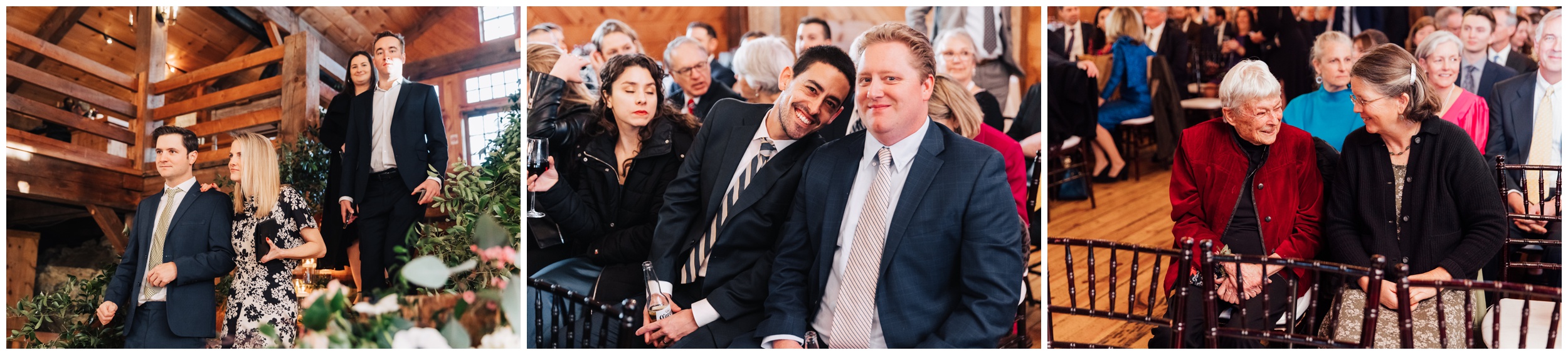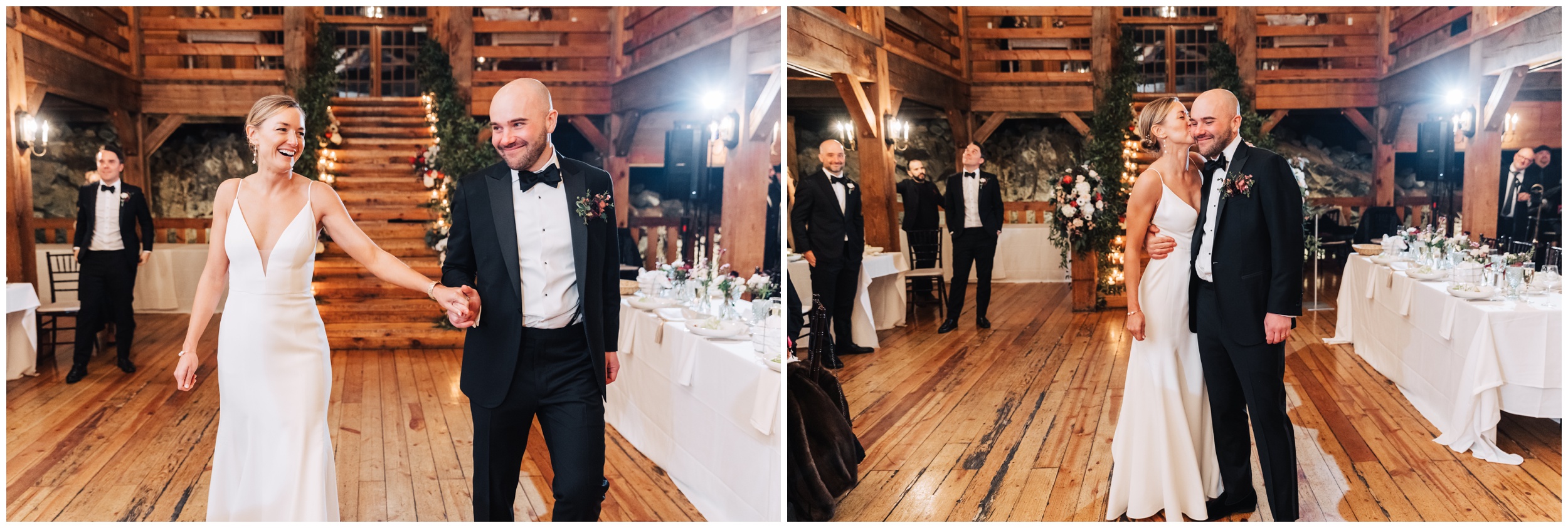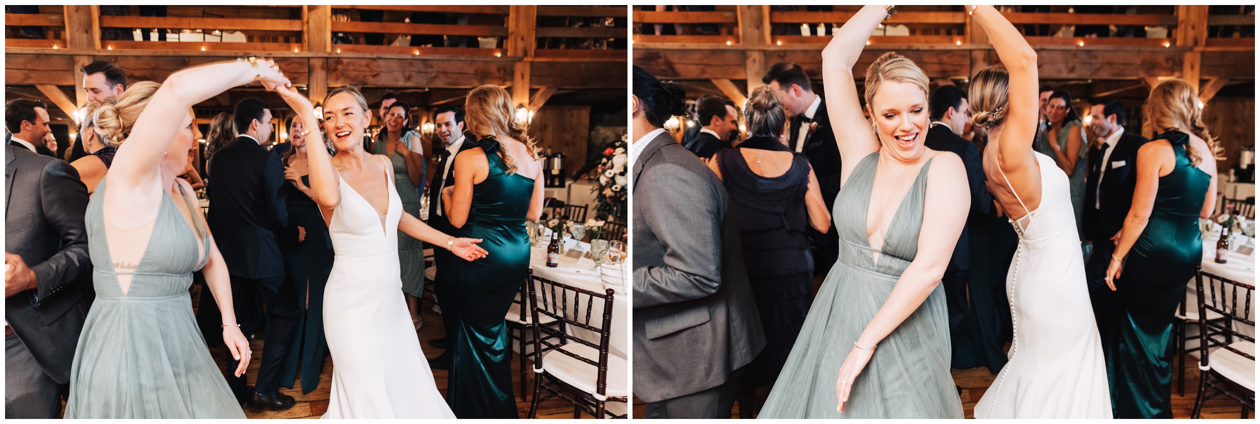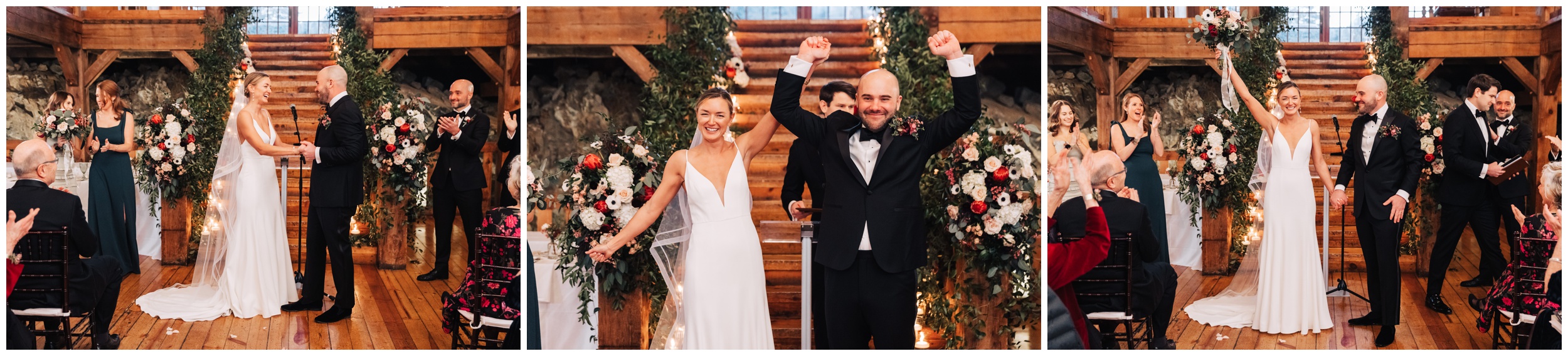 After braving the chilly outdoor moments, stepping into the barn for the ceremony felt extra cozy. The space was warm, inviting, and full of that classic New England charm. Guests gathered, “I do’s” were said, glasses clinked, and the celebration quickly turned into an incredible party.