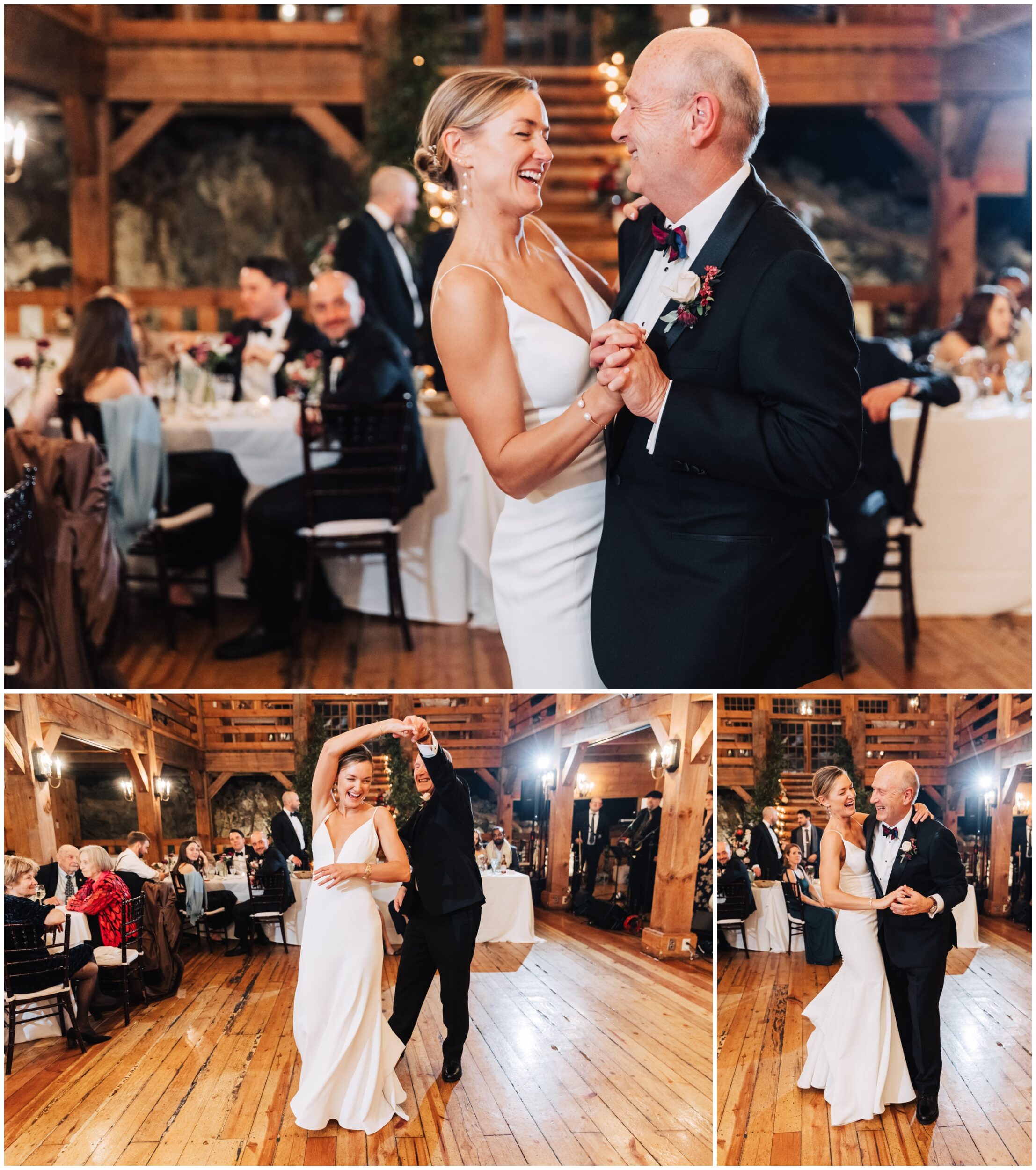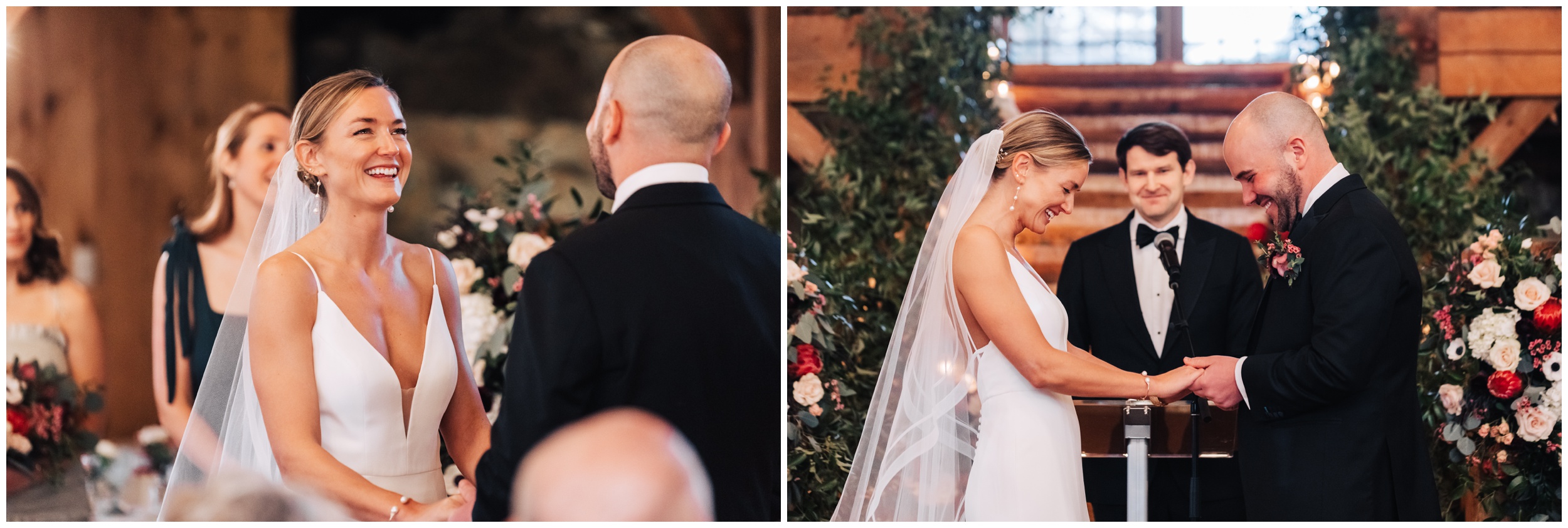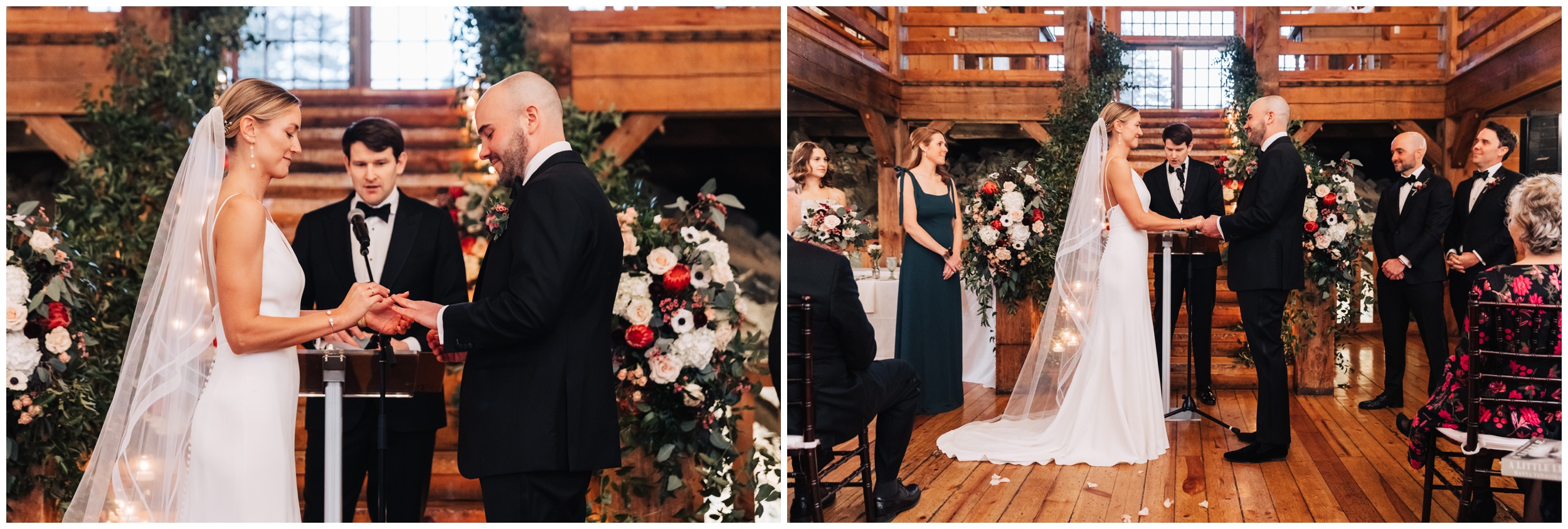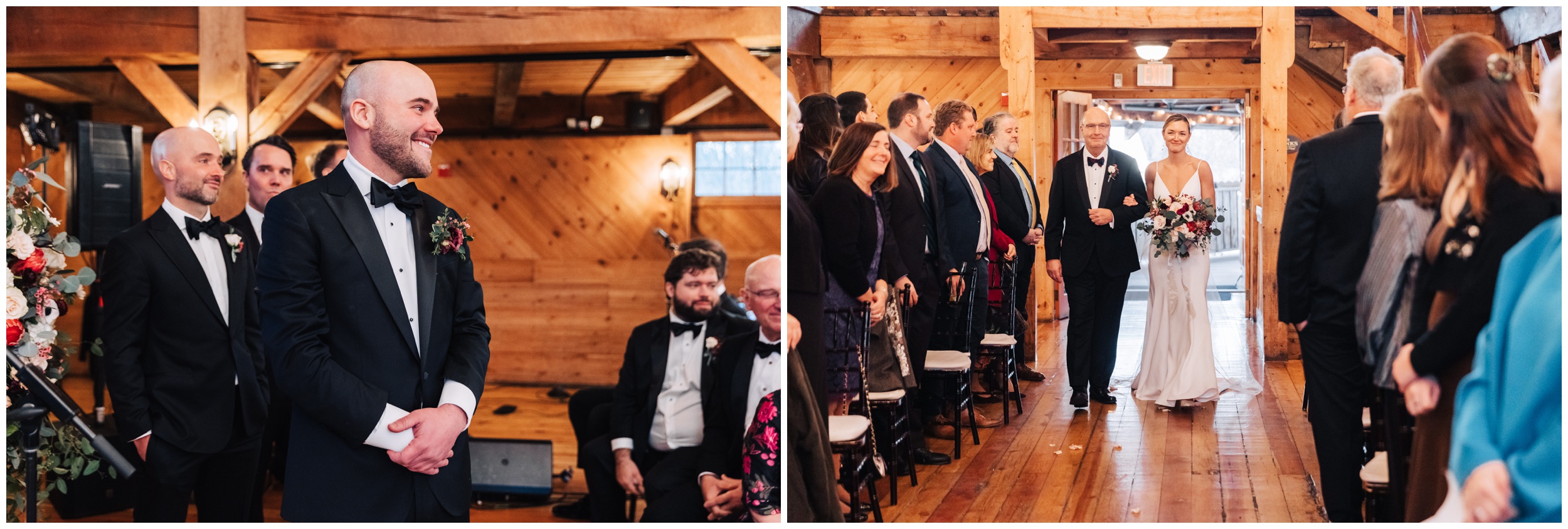 After braving the chilly outdoor moments, stepping into the barn for the ceremony felt extra cozy. The space was warm, inviting, and full of that classic New England charm. Guests gathered, “I do’s” were said, glasses clinked, and the celebration quickly turned into an incredible party.